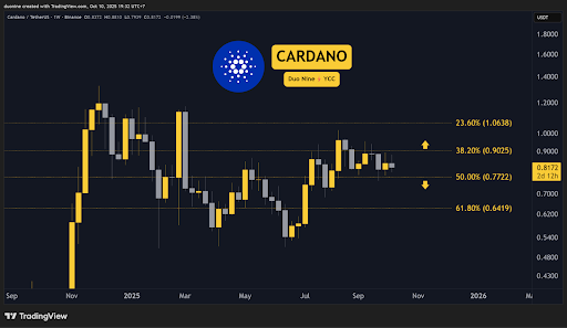 Cardano fell by 4% this week, but managed to hold well above the key support at $0.77. As long as this level holds, buyers have a chance to take it higher later.