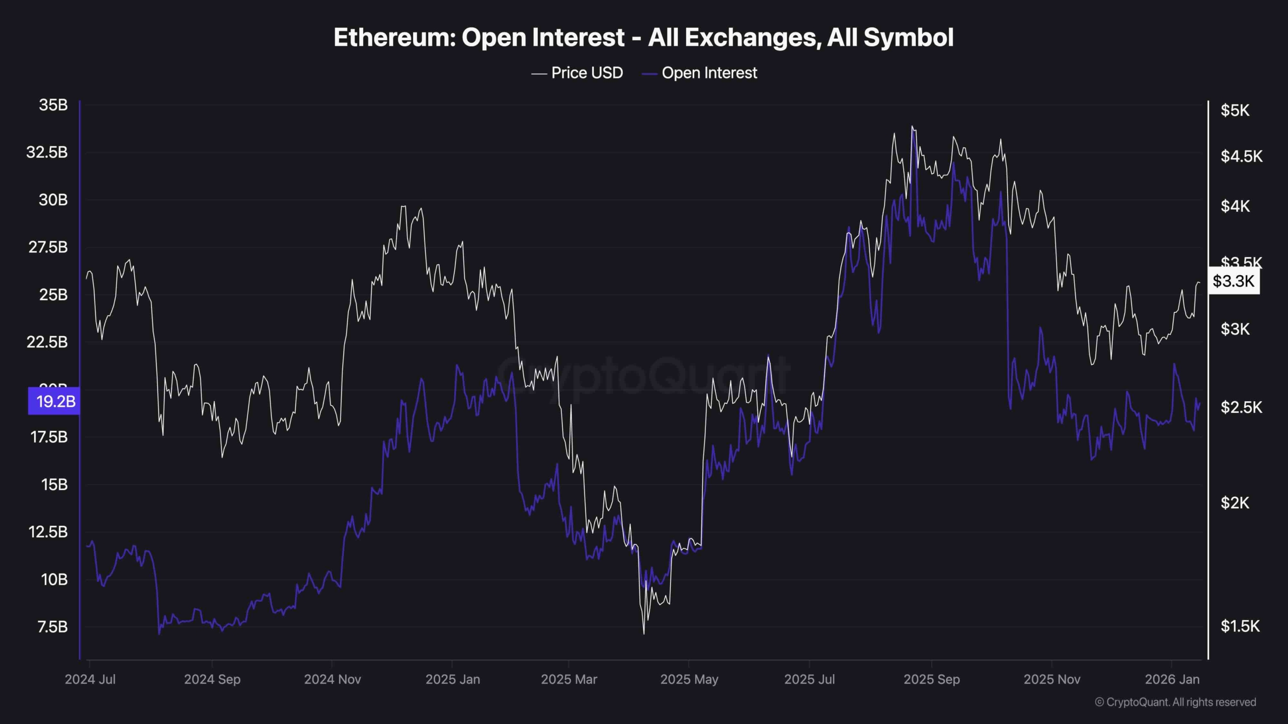 From a futures market sentiment perspective, Ethereum’s open interest has been oscillating horizontally, now around $19.2B across all exchanges.