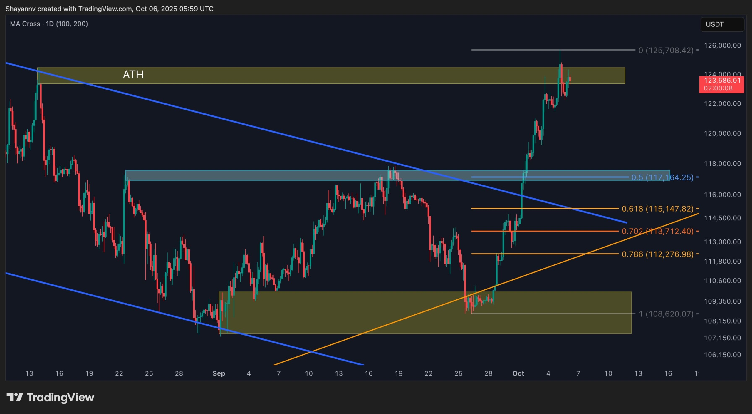 On the daily timeframe, XRP is trading within a converging wedge pattern, defined by a descending resistance line from the yearly high and a rising trendline acting as dynamic support. The price has reclaimed both the 100-day and 200-day moving averages and completed a pullback, reflecting improving bullish sentiment after weeks of sideways action.